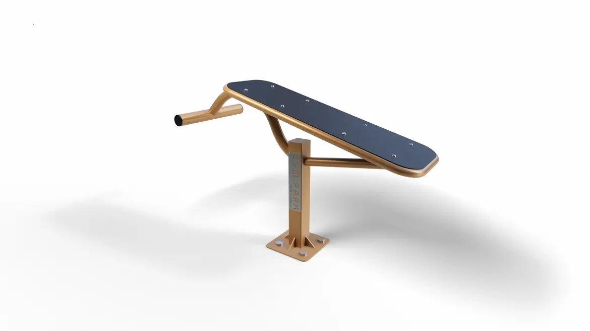 Ławka S-19 idealna do ćwiczeń na brzuch, angażująca mięśnie proste, skośne i poprzeczne. Doskonała do street workoutu, pomagająca w budowie silnego core.