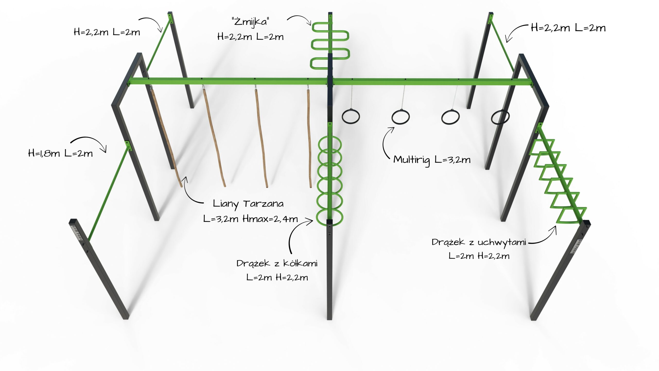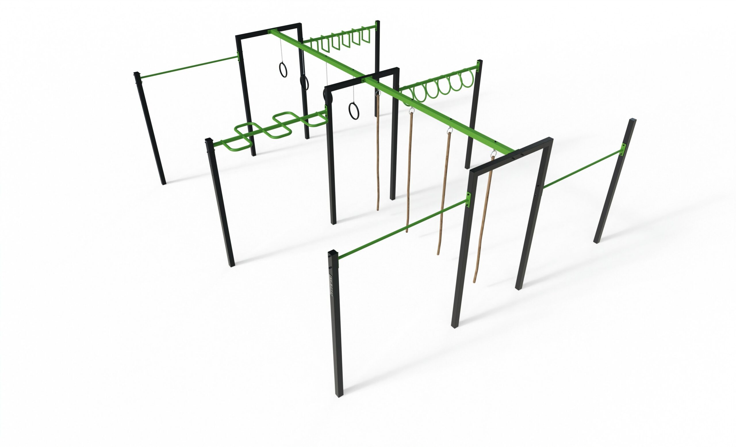 ZESTAW COMBO 6 – Z-CO6 to wszechstronna strefa treningowa, która łączy elementy street workout, oraz przeszkody typu ninja. Umożliwia kompleksowy trening siłowy, sprawnościowy i koordynacyjny, angażując całe ciało – mięśnie ramion, pleców, klatki piersiowej, brzucha oraz nóg.